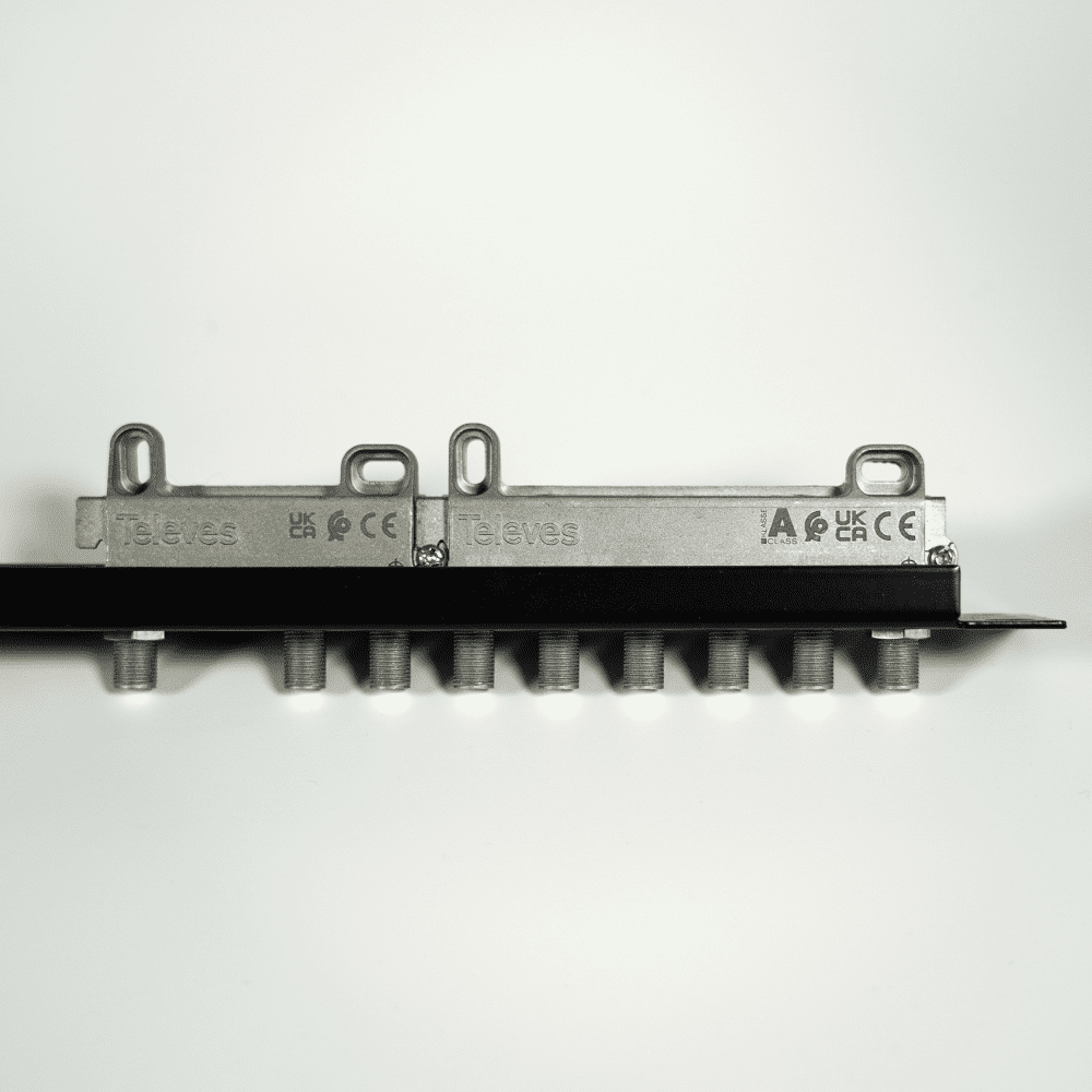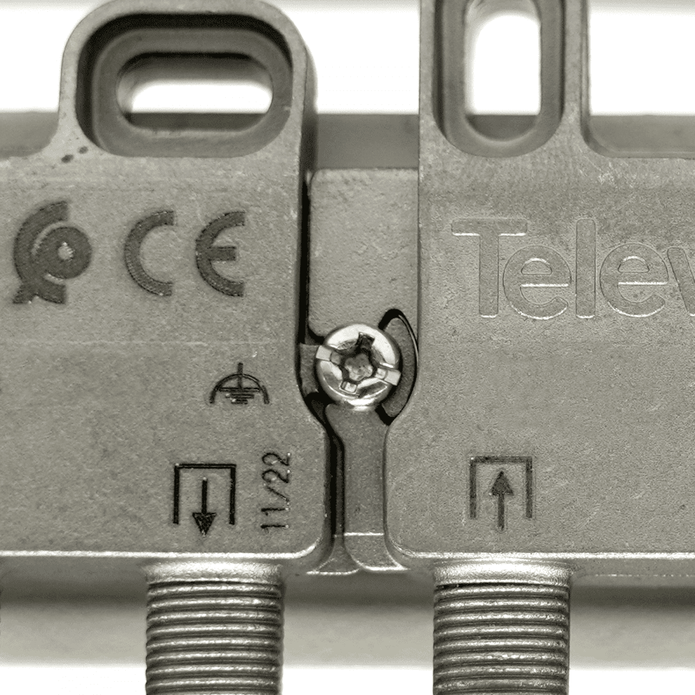 4-smjerni razdjelnik s F konektorima, za SMATV signale. Ima niske gubitke zahvaljujući minijaturizaciji elektroničkih komponenti, što poboljšava njegovo električno ponašanje. Osim toga, njegovo Zamak kućište pruža izvrsnu zaštitu.